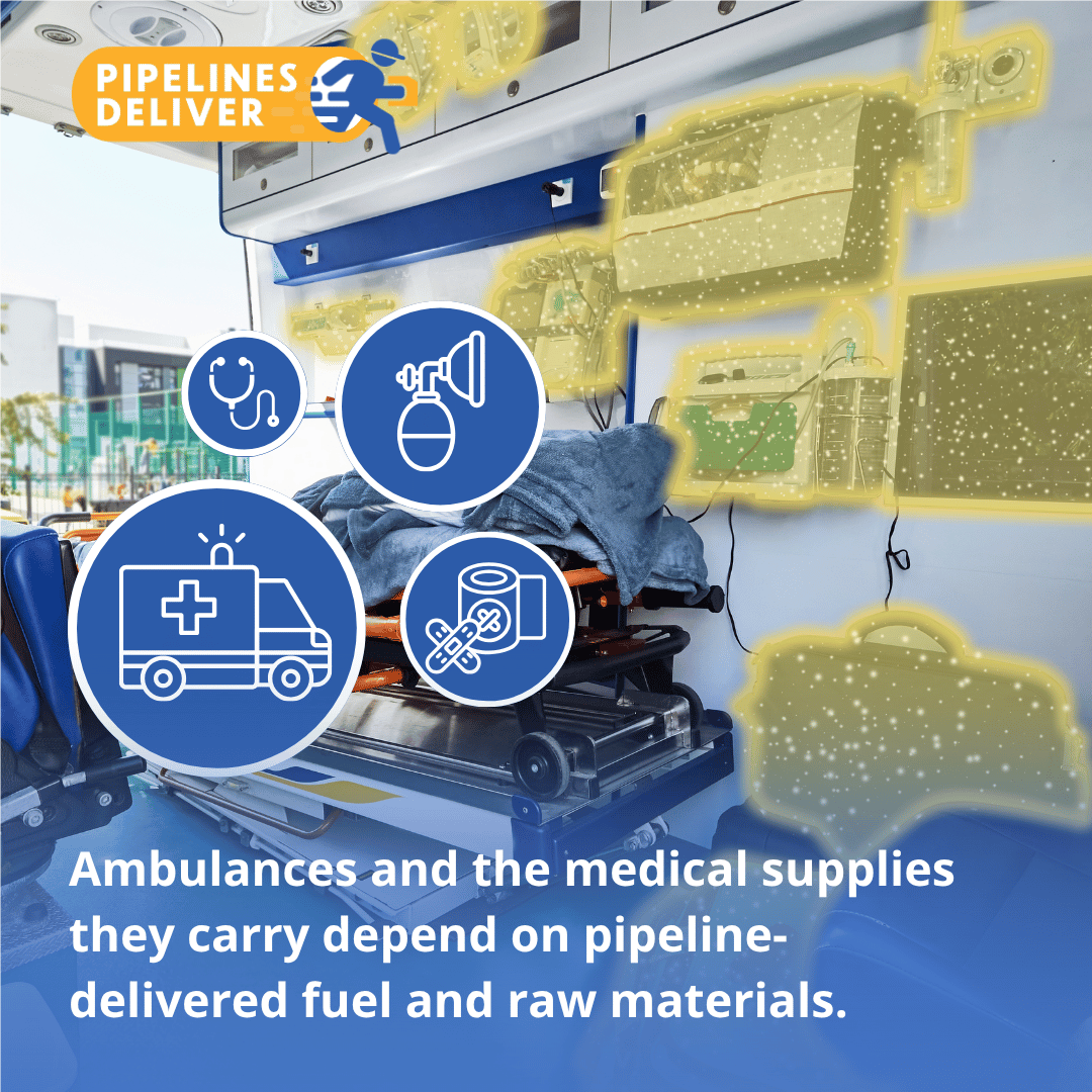 Ambulances don’t just rely on pipeline-delivered fuel. The raw materials from pipelines are used to make everything from the tires and plastic dashboard to the lifesaving equipment EMTs use every day. #PipelinesDeliver https://www.pipelinesdeliver.com